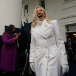 But as the first woman to serve as governor, Spanberger wore all white on Saturday, a possible tribute to the women’s suffrage movement. She wore a gold pin on her long, white coat.