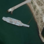 The replica carries 16 mock-ups of fighter jets on its deck, according to satellite photos taken by Maxar Technologies. The vessel appears to be some 650 feet long and 160 feet wide. A real Nimitz is over 980 feet long and 245 feet wide.