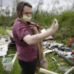 In Alabama, people seeking shelter from tornadoes huddled in community shelters, protective masks covering their faces to guard against the new coronavirus. A twister demolished a Mississippi home save for a concrete room where a married couple and their children survived unharmed, but 11 others died in the state.