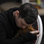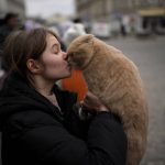 One woman ferried her dog across an improvised bridge over the Irpin River amid the evacuation. Another at a train station in Poland nuzzled her orange cat, nose to nose.