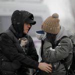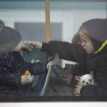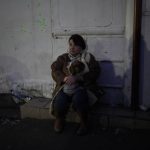 People fleeing the outskirts of Kyiv crowded together under a destroyed bridge, carrying little luggage and abandoning their vehicles on the road. But their pets remained with them.