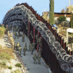 Photos published by the Nogales International newspaper show rows of concertina wire stacked along the approximately two-story wall.