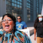 “As we look to our future, we look to our past, to our ancestors, and this is the biggest threat that is harming us right now,” Clark said before walking into the courthouse. If drilling continues, he said, future generations will suffer.