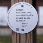 To counter that apathy, Starr and others have turned to public art to get the message out that climate change is coming to New England communities. The markers imagine events like a boathouse destroyed in a storm surge from a Category 4 hurricane on Sept. 24, 2032, or a heat-inspired tick outbreak that forced a park to close on June 8, 2044.