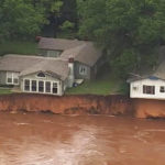 Near Crescent, about 34 miles north of Oklahoma City, erosion left several homes hanging over the swollen Cimarron River. One unoccupied home rolled into the river Tuesday, and authorities say others could collapse.