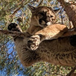 San Bernardino County firefighters found the large mountain lion perched on a branch about 50 feet high.