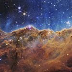 — Carina nebula, one of the bright stellar nurseries in the sky, about 7,600 light-years away. One view was a stunning landscape of orange cliffs.