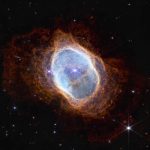 — Southern Ring nebula, which is sometimes called “eight-burst.” Images show a dying star with a foamy edge of escaping gas. It’s about 2,500 light-years away. A light-year is 5.8 trillion miles.