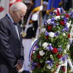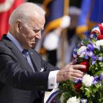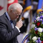 His face tight with emotion, Biden walked up to the wreath, cupping it in his hands in silent reflection and then making the sign of the cross. Later, he called on Americans to commemorate their fallen heroes by remembering their fight for the nation’s ideals.