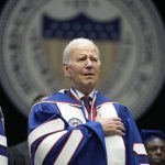 It was unclear whether Biden was aware that several students had turned their backs as they held handmade signs protesting some of the injustices he mentioned in his speech. One sign named Jordan Neely, the New York City subway performer who died May 1 after he was restrained in a chokehold by another passenger.