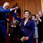 Republican Sen. Susan Collins of Maine, who led negotiations with Baldwin and Sinema in the Senate, attended a ceremony after the House vote with Pelosi and Senate Majority Leader Chuck Schumer.