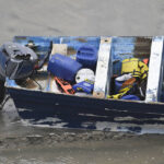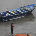 A bulldozer moved the panga on the beach as the search was underway. The wooden dinghy that was over 20 feet long had scuffed blue paint and wooden planks for seats. Inside the boat were a pair of running shoes, more than a dozen life vests, an empty waterproof cell phone bag and various water bottles. Its engine was visibly damaged.
