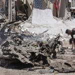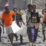Mogadishu’s deputy mayor, Ali Abdi Wardhere, told reporters at the scene that his own convoy had been driving nearby at the time but was unharmed. He said an investigation was underway and gave a toll of five soldiers killed and five civilians injured.