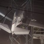 Montgomery County Fire Chief Scott Goldstein said the plane got stuck in the lines about 100 feet (30 meters) above the ground at around 5:40 p.m. Sunday. Responders secured it to the tower at 12:16 a.m. Monday, and the first occupant was removed from the plane at 12:25 a.m. The second occupant was out at 12:36 a.m.