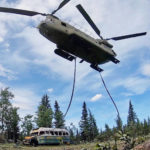 The 1940s-era bus, sometimes called “Bus 142” or “The Magic Bus,” was used to house employees by the Yutan Construction Co. when it built an access road about 25 miles west of the Parks Highway, the main thoroughfare between Anchorage and Fairbanks. The National Guard named Thursday’s bus lift “Operation Yutan.”