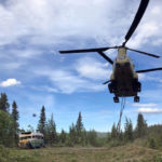 An Alaska National Guard Chinook helicopter flew the bus out of the woods just north of Denali National Park and Preserve on Thursday.