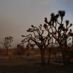 JUNIPER HILLS, Calif. — An enormous wildfire that churned through mountains northeast of Los Angeles and into the Mojave Desert was still threatening homes on Monday, but officials said calmer winds could help crews corral the flames.