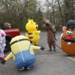 “It’s so much fun. Nobody can really see, (because) I have my mask on. And when I walk, I’m just smiling from ear to ear,” the 42-year-old Ignash said before donning her pink unicorn get-up and leading Monday’s impromptu parade.