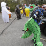 It was the club’s seventh walk since it formed in March. The members’ full-body inflatable costumes run the gamut from dancing hippos, sharks and bears to a cheerful Pikachu, Stay Puft Marshmallow Man and Mr. Potato Head. And, of course, there’s a T-Rex.