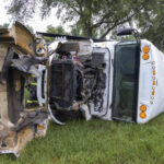 The accident happened in Marion County, about 80 miles north of Orlando. The workers had been headed to Cannon Farms in Dunnellon, which has been harvesting watermelons. The bus ended up on its side, with its windows smashed and its emergency rear door and top hatch open. The truck came to a stop at the side of the road, with its air bag blown and extensive damage to the driver’s side.