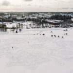 The artwork, which was completed over two days, measures about 525 feet in diameter. Finnish newspaper Helsingin Sanomat said it could be the largest snow-drawing ever made in the Nordic country.