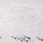Under the guidance of local resident and amateur artist Janne Pyykko, 11 snowshoe-clad volunteers stamped a series of complex geometric patterns on a golf course. Together, the designs resemble a huge snowflake.
