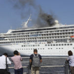 The local coast guard branch said the fire started in a storage area on the top deck of the Asuka II, one of Japan’s largest cruise ships.