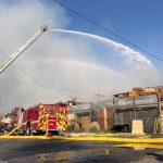 The fire was reported around 4:45 a.m., and more than 100 firefighters and 26 fire engines from multiple departments responded to the industrial district surrounded by neighborhoods about 10 miles south of downtown Los Angeles.