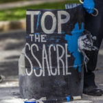 The Tallahassee Democrat reported that one of the man’s drums was painted in white letters, “Stop the massacre.” The other read, “Free prisoners now.” The man also wore what appeared to be a surgical mask.