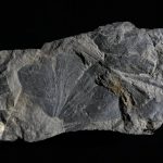 Embedded in the ancient rock is a triangular leaf with rounded upper lobes. This leaf fell off a tree around the time that T-rex and triceratops roamed prehistoric forests, but the plant is instantly recognizable. “You can tell this is ginkgo, it’s a unique shape,” said Barclay. “It hasn’t changed much in many millions of years.”