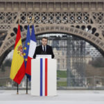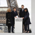 France’s Emmanuel Macron and Spain’s King Felipe and Queen Letizia led a ceremony on Trocadero plaza overlooking the Eiffel Tower with survivors of terrorist attacks and families of victims.