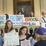 A smaller contingent of anti-abortion advocates held signs and urged lawmakers to pass the bill.