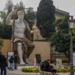 The result: An imposing figure of a seated emperor, draped in a gilded tunic and holding a sceptre and orb, gazing out over his Rome from a side garden of the Capitoline Museums. The reconstructed statue is located just around the corner from the museum courtyard where the original fragments of Constantine’s giant feet, hands and head are prime tourist attractions.