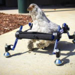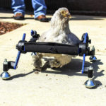 The chicken, named Granite Heart, is learning to walk with a custom wheelchair.
