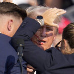 Trump’s campaign said the presumptive Republican nominee was doing “fine” after being whisked off the stage, though the shooting pierced the upper part of his right ear.