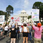 On Sunday, hundreds of marchers took to the streets in Montgomery, Birmingham and Huntsville to protest the abortion ban that Ivey signed into law. Crowds chanted “my body, my choice!” and “vote them out!”