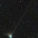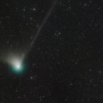 Green from all the carbon in the gas cloud, or coma, surrounding the nucleus, this long-period comet was discovered last March by astronomers using the Zwicky Transient Facility, a wide field camera at Caltech’s Palomar Observatory. That explains its official, cumbersome name: comet C/2022 E3 (ZTF).