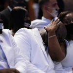 Dozens of Floyd’s family members, most dressed in white, took part in the four-hour service. Grammy-winning singer Ne-Yo was among those who sang.