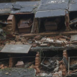 The girl’s father died as a house was knocked to the ground. She survived because he protected her with his body, members of rescue teams said. Three more people died in the same place.