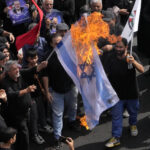 Earlier Thursday in Tehran, Iranian supreme leader Ayatollah Ali Khamenei prayed over Haniyeh’s coffin in a ceremony at Tehran University, with the new president, Masoud Pezeshkian, next to him. State television later showed the coffin placed in a truck and moved on the street toward Azadi Square in Tehran and people throwing flowers at it.
