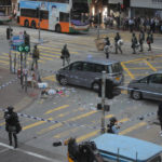 The shooting occurred in a crosswalk at a large intersection strewn with debris that had backed up traffic in Sai Wan Ho, a neighborhood on the eastern part of Hong Kong Island.