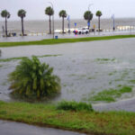 There were no immediate reports of deaths or injuries. TV news broadcasts from coastal communities showed waves from nearby lakes, rivers and Gulf waters thrashing sea walls. Water poured into city streets amid blinding downpours. Oak and cypress trees leaned in the high winds, and some utility poles swayed back and forth.