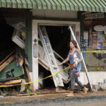Residents and business owners wore masks and gloves while clearing debris Tuesday in Hot Springs, where almost every building along the tiny town’s main street was heavily damaged.
