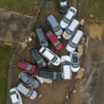 In Swannanoa, a small community outside Asheville, receding floodwaters revealed cars stacked on top of others and trailer homes that had floated away during the storm. Roads were caked with mud and debris and pockmarked by sinkholes.