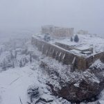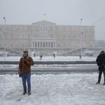 Snow is common in Greece’s mountains and in the north of the country, but much rarer in the capital, particularly heavy snow. Some Athenians emerged cautiously outside, snapping photos on balconies and in the streets.