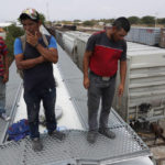 “Now we’re going by train because we can’t go on buses, because they won’t let us through,” said Rudi Margarita Montoya, the wife of a Honduran carpenter, who was perched atop a freight car with her young son and daughter and her husband.