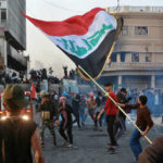 In Baghdad, protesters gathered around the historic Rasheed Street near the strategic Ahrar Bridge and burned the Iranian flag, chanting “Iran out!”