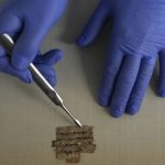 The antiquities authority showed the papyrus to the press at its labs in Jerusalem alongside two other ancient Hebrew fragments it holds — one found in a cave near the Dead Sea in the 1950s and a second that was seized from the antiquities black market in 2016 and believed to have been looted from a cave.