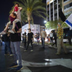 Demonstrators wore face masks and largely kept their distance from one another, in line with social-distancing rules, as speakers criticized Netanyahu’s possible partnership with rival Benny Gantz. Some held black flags, which have become the symbol of their campaign in recent weeks.