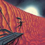 In a fun poster designed by Swiss graphic novelist Frederik Peeters for the research team, a dancing astronaut holds up an umbrella in front of an orange waterfall-like deluge.